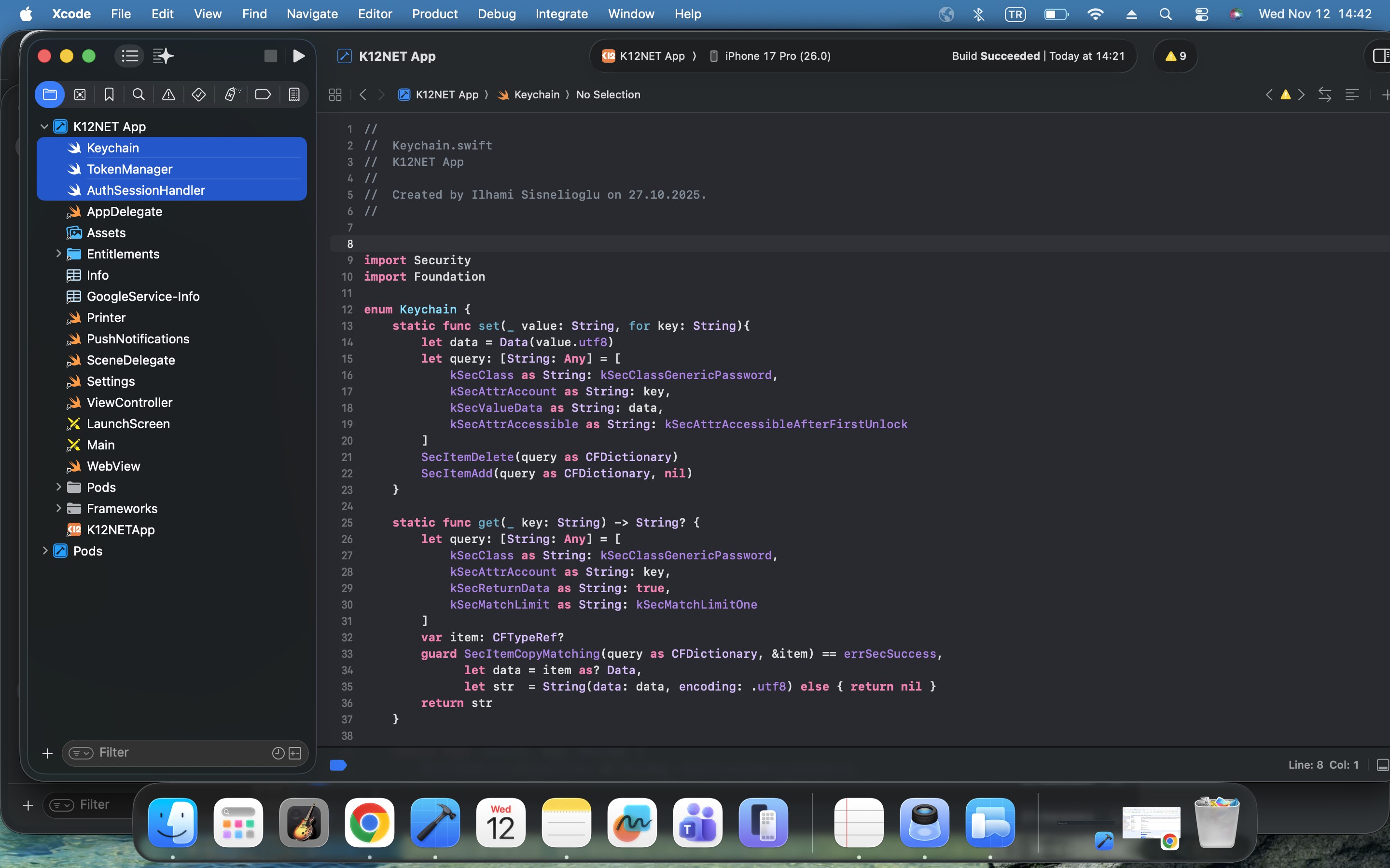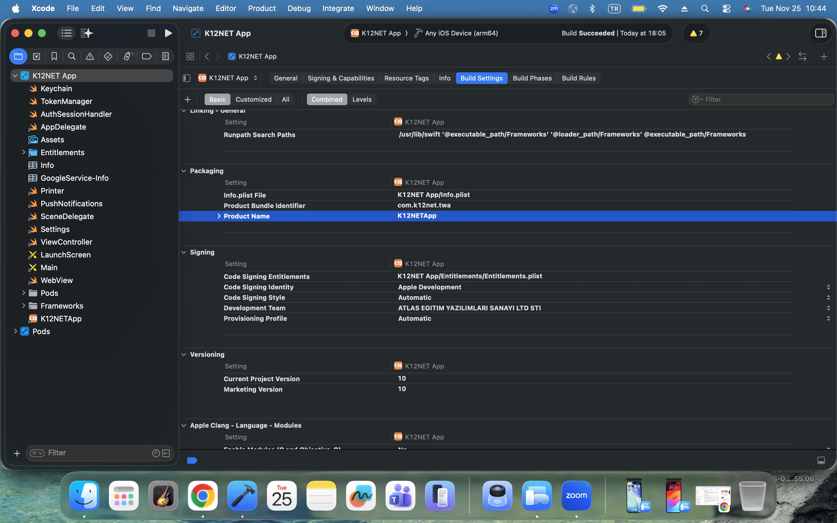 Find the below Product Name in Xcode project and change the K12NETApp with this value of Product Name row to remove build errors for K12NETApp.webview lines.